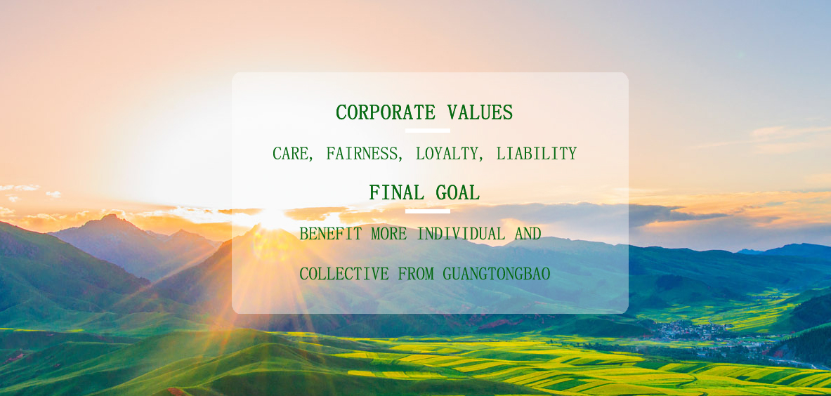 Sticking to the sense of worth of “Care, Fairness, Loyalty, Liability” and ultimate aim of “Benefit more individual and collective from Guangtongbao”, Guangtongbao will committed to the carrier of health of foodstuff and medicine for human and sincerely welcome all the friends and enterprises for economic exchange and cooperation to build a healthier, more harmonious and beautiful future.